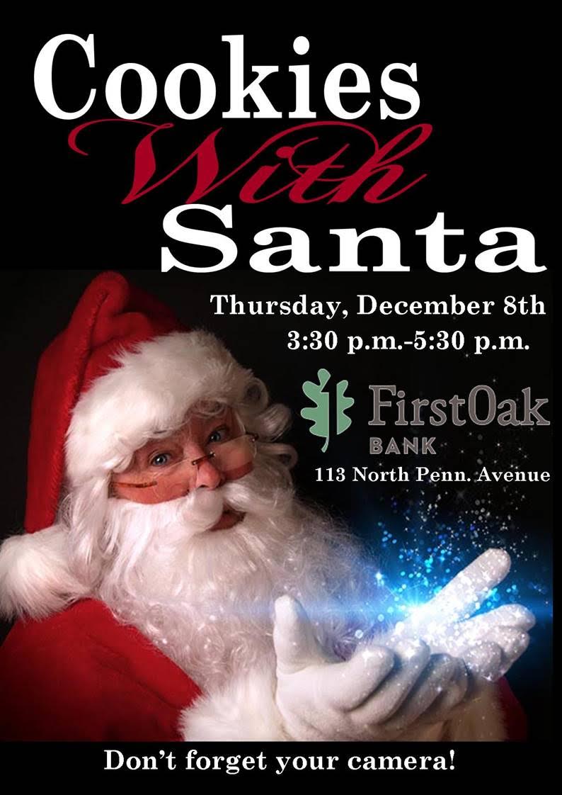 Cookies with Santa Cookies with Santa Come enjoy cookies with Santa Thursday, December 8th 3:30 p.m.-5:30 p.m. FirstOak Bank 113 North Penn. Avenue Watch Now